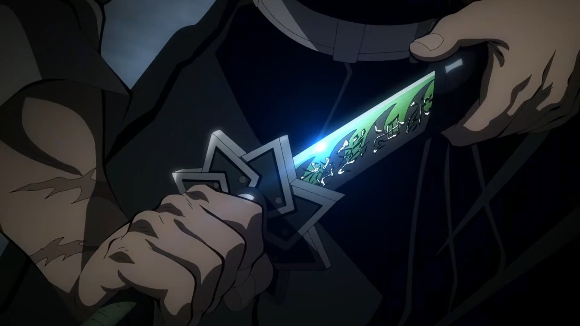 | Sanemi Shinazugawa | Usuario representante de la Respiración del Viento. Hoja de la nichirin verde con un guardamanos en forma abstracta con 8 puntos con un patrón superpuesto; cada placa tiene un núcleo verde bosque con un borde plateado. | |