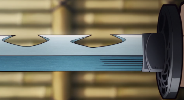 - La espada de Zenitsu Agatsuma era única porque su coloración no se formaba como una banda sólida sino como un motivo de relámpago a lo largo de la espada. La razón de este patrón es desconocida.