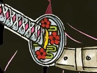 La deuxième lame de Giyu obtenue lors du combat contre Muzan a une garde ressemblant à un tourbillon. |