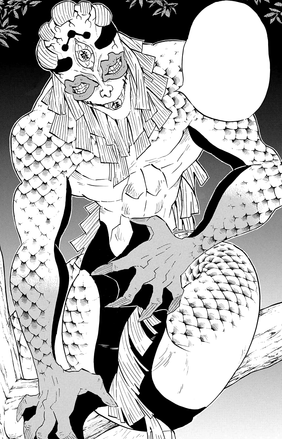 - Когда он стал Демоном, он ел детскую плоть и модифицировал свое тело, как ему хотелось. За исключением Мудзана, он презирал всё живое, смеялся и насмехался над другими.