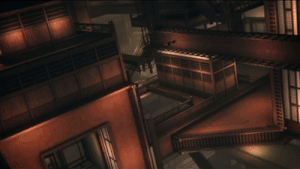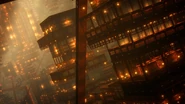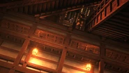 Due to its unusual warped gravity, impossible structures can be formed within the Infinity Castle. During Akaza's path to the Upper Rank meeting, he fell hundreds of stories past the warped corridors and halls and flew past a large and ornate water garden palace, only to "fall" further past, reaching what seemed to be the bottom and landing onto the floor. This was then revealed to be a wall that was formed in the direction of the shifting columns below him and he was then taken high above the columns and past the ceiling through opening doors, coming across a large maze-like area filled with towering pillars.[2]