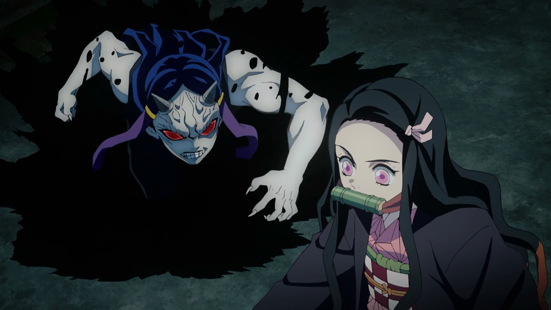 The Swamp Demon questions why a swordsman would be accompanying a demon. The broken two-horned self fixes its neck and they all fade back into the bog. Under hypnotic suggestion from Sakonji Urokodaki, Nezuko sees all humans as her family, and she will fight to protect them.[10] She rushes the demons as they appear from the swamp and tries to crush them with a fierce axe kick.[11]